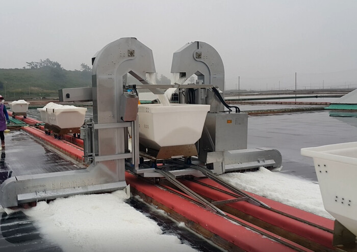 | ▲ 양용 자동채염기(소금을 이동수레로 옮겨 담는 장비)(출처=신안군) |
