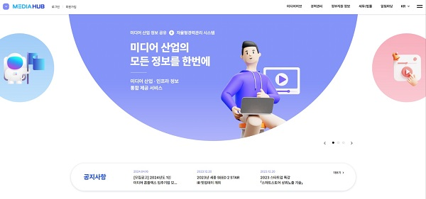 ‘미디어 허브’는 크리에이터 미디어 산업의 질적 성장 및 자율적 네트워킹 환경 조성을 위해 구축되었으며 △정부지원 정보 통합 제공 서비스 △자율형 경력관리 시스템 △무료 법률/세무 자문 서비스 등을 제공한다.
