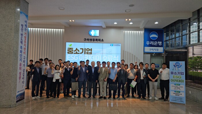 [구미=박병상 기자] 경북상공회의소협의회·구미상공회의소(회장:윤재호)와 경상북도지속가능발전협의회(회장:김상동)·경북산학융합원(원장:박재우)·신경주대학교 SDGs-ESG연구센터(센터장:이창언)는 지난 16일(화) 16시 구미상공회의소(1층 중회의실)에서 중소기업 ESG 아카데미 제6강 및 수료식을 개최하였다.