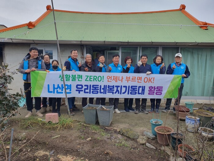 한편, ‘나산면 우리동네복지기동대’는 전기 설비, 건축업, 자원봉사자, 생활지원사 등 15명으로 구성된 민관 협력 기구로, 취약계층 가구를 직접 방문해 긴급 수리, 주거환경 정비 등의 생활불편 개선 서비스를 제공하고 있다.
