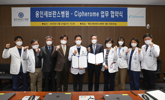 협약식에서 용인세브란스병원은 싸이퍼롬과 디지털 헬스케어 분야의 경쟁우위 확보와 임상-유전체 통합 정보 빅데이터 기반 정밀의학 구현 및 관련 연구 역량 확보를 목표로 공동 연구를 진행해 나가기로 협의했다.