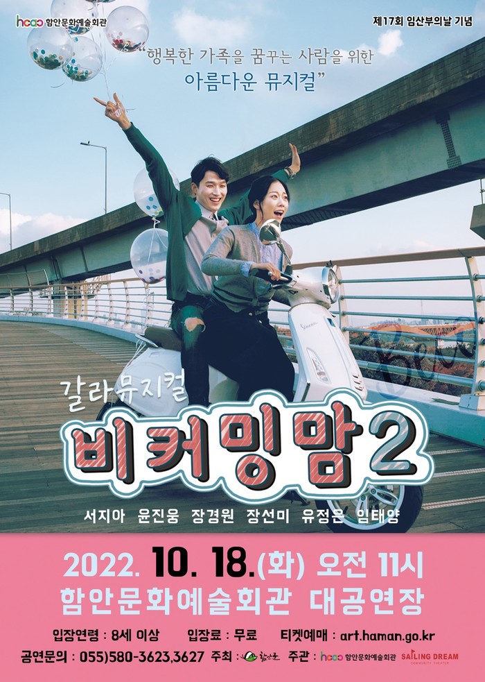 이번 ‘비커밍맘2 갈라뮤지컬’ 공연은 약 3년 간 이어진 코로나19로 인해 더욱 더 자유로운 공연 관람이 어려웠던 함안 지역의 임산부와 육아 부모들을 위로하기 위해 10월10일 임산부의 날을 기념하여 기획됐다.
