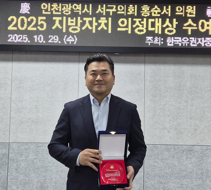 | ‘2025년 지방자치 의정 대상’에서 대상을 수상한 홍순서 의원이 포즈를 취하고 있다. (사진=서구의회) |