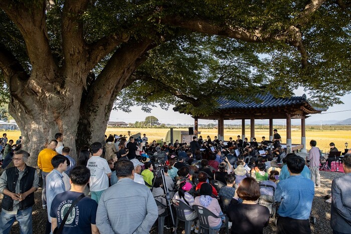 | ▲ (재)영암문화관광재단, 지난 12일 서호면 엄길마을 느티나무 아래에서 ‘엄길마을 들녘음악회’ 개최 / 영암군 제공 |