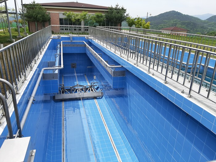 1억 3000만원이 투입된 이번 보수공사에서는 장시간 사용으로 인해 내구성이 저하된 침전지에 내구성이 강한 위생 타일을 부착했다.