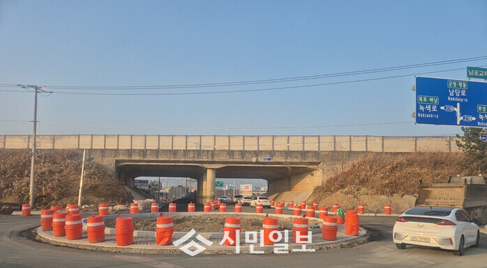 남포교차로는 국도 2호선 램프 구조로 인해 버스의 회전이 어렵고, 일부 차량의 역주행 시도 등 위험 사례가 있었다. 또한 인재개발원과 국도 2호선에서 내려오는 차량이 같은 방향으로 좌회전하며 시야 확보가 어려워 충돌 위험이 제기된 곳이다.