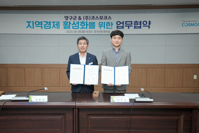 ㈜코스모코스(대표 이정훈)가 지난 8월 8일 생물다양성을 보전하면서 지속가능한 천연물 활용 방안을 모색하기 위해 유네스코가 지정한 생물권보전지역인 강원특별자치도 양구군과 MOU를 체결했다고 밝혔다.