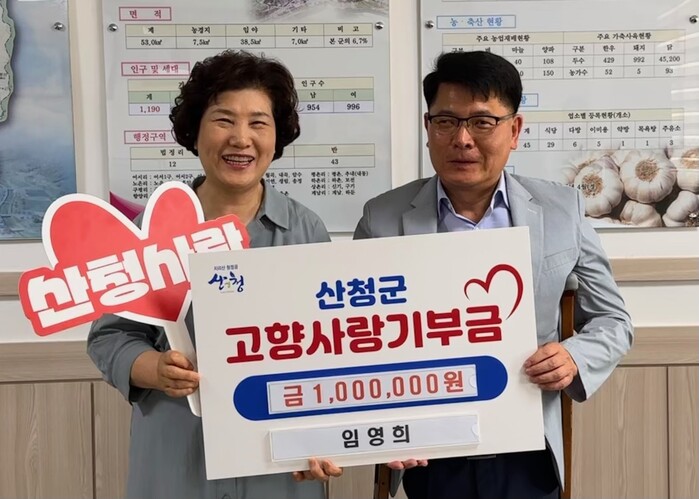임영희 대표는 “고향 산청을 위한 일이라면 멀리서도 항상 응원하고 있다”며 “고향사랑기부를 통해 산청이 더욱 발전하길 바란다”고 말했다.