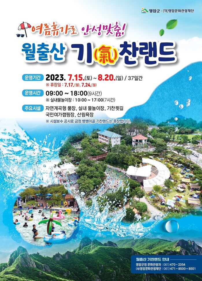 영암군 관계자는 “월출산 자락에서 관광객이 시원한 물놀이를 안전하게 즐길 수 있도록 시설 점검, 환경 정비 등 손님맞이에 최선을 다하고 있다.”고 밝혔다.