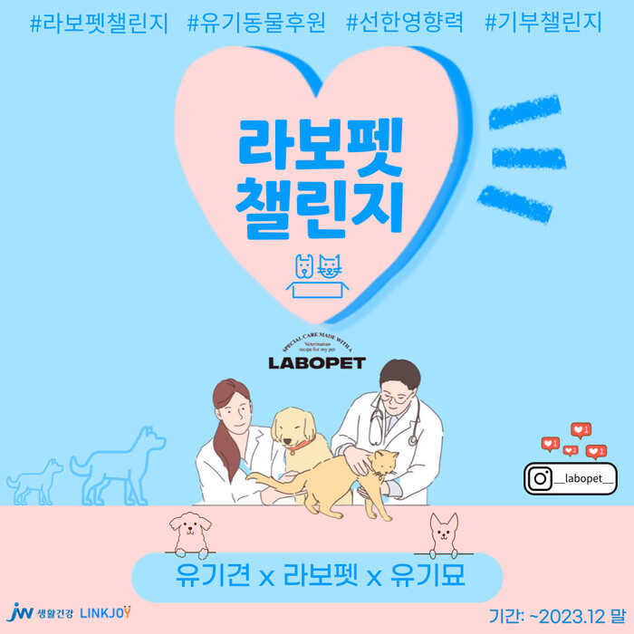 링크조이 관계자는 “반려동물과 유기견의 행복한 삶을 위한 캠페인으로 ‘라보펫 캘린지’를 기획했다. 반려동물인들의 많은 관심 부탁드리며, 해당 캠페인으로 유기견들에게도 긍정적인 영향이 갔으면 한다”라고 전했다.