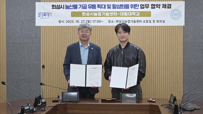 이날 화성시농업기술센터에서 진행된 협약식에는 송성호 농업기술센터 소장과 김한희 대림대학교 학과장 등 관계자들이 참석해 상호 협력의 뜻을 다졌다.