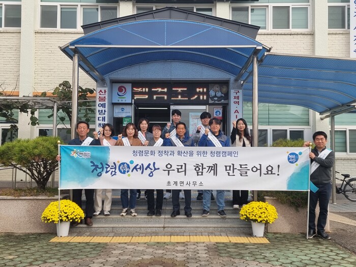 캠페인에 동참한 이필호 초계면장은 “청렴 캠페인을 통해 면사무소 직원뿐만 아니라 초계면민들에게도 초계면 청렴 실천 다짐을 알리는 계기가 되길 바란다”며 “앞으로도 지속적인 청렴운동을 통해 신뢰받는 초계면 조성을 위해 최선을 다하겠다”고 말했다.