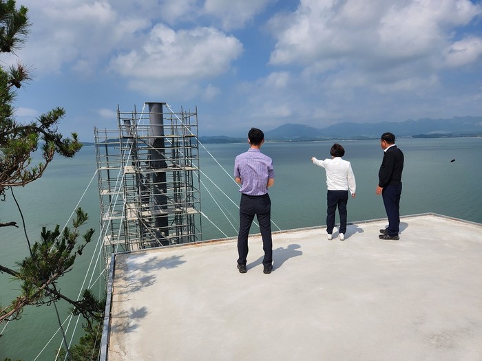 유미자 강진군 부군수가 지난 7월 28일 분홍나루 노을전시관 건립공사 현장을 방문해 추진현황을 점검하고 “민선 8기 관광객 500만 명 달성을 위해서 분홍나루 노을 전시관 건립공사와 스마트 복합쉼터 조성공사를 신속하게 추진해 강진군의 새로운 랜드마크로 만들 것”이라며, “지역 주민과 많은 관광객이 강진의 아름다운 노을을 볼 수 있도록 적극 추진하겠다.”고 밝혔다.