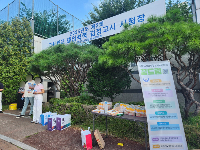 의왕시꿈드림센터는 더운 날씨 속에서 청소년들이 긴장을 풀고 편안한 마음으로 시험에 임할 수 있도록 검정고시 고사장을 찾아 응시생들에게 비타민 음료를 나눠주며 따뜻한 응원의 메시지를 전했다.