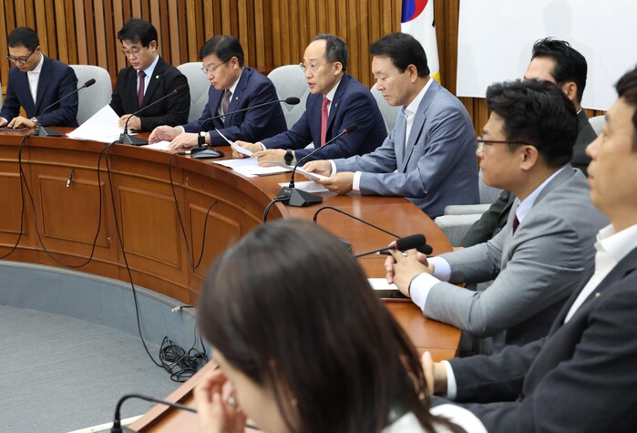 이날 오전 당 원내대책회의에 참석한 추 원내대표는 "야당의 논리대로라면 북한이 무슨 도발을 해도 조용히 받아들이고 가만히 있으라는 이야기"라면서 이같이 지적했다.