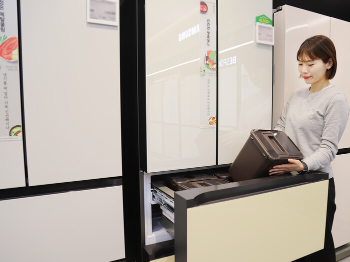 삼성전자 '비스포크 3도어 김치냉장고' 행사 상품 구매 시 선착순 1,000명에게 롯데모바일상품권 10만원 혜택을 제공한다.