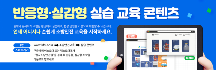 [시민일보 = 여영준 기자] 한국소방안전원(원장 이상규)은 안전관리자의 직무능력 강화를 위해 반응형 및 실감형 실습교육 콘텐츠를 제작하여 공개했다고 1일 밝혔다.