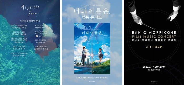 <너의 이름은. 필름 콘서트>는 7월 2일(토) & 7월 16일(토) 롯데콘서트홀, <엔니오 모리꼬네 영화음악 콘서트 WITH 라포엠> 7월 17일(일) 롯데콘서트홀에서 열린다. 두 공연은 인터파크티켓과 롯데콘서트홀, 예스24에서 예매 가능하다.
