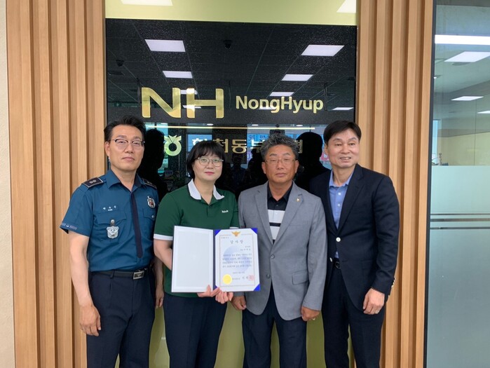 농협 은행원 B씨 또한 지난 5월 30일 범인으로부터 “보이스피싱 범죄가 많이 발생하니 정기예금을 해약하고 인출하라”는 말에 속아 현금 1000만원을 인출하려는 고객(여·70대)을 발견하고 경찰에 신고하여 전화금융사기 피해를 예방했다.