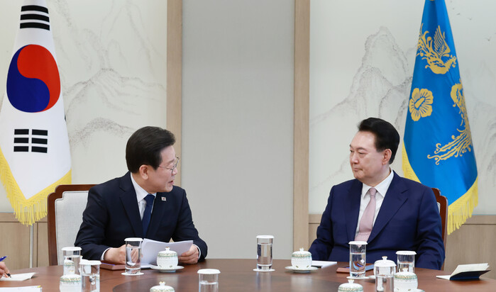 특히 이태원특별법은 사실상 통과 협조가 거부됐고, 채상병특검법이나 김건희여사특검법 등은 비공개 자리에서조차 논의가 안 되는 등 전날 회담에서 별다른 성과를 내지 못한 데 대해서도 “우리들이 문제제기는 했는데 거기에 답을 안한 것"이라며 "(윤 대통령이)피하고 싶었을 것”이라고 화살을 돌렸다.