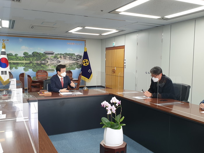 진주시는 지난 9월 천연기념물로 지정된 진주 정촌면 화석산지의 활성화를 위해 지난 23일 조규일 진주시장과 황권순 문화재청 천연기념물과장이 만남을 가졌다고 26일 밝혔다.