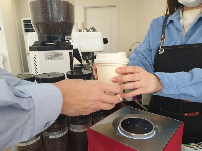 | ▲ 사진제공=고양시청/ 카페에서 다회용컵을 이용하는 모습 |