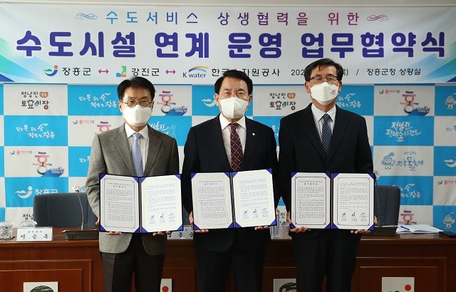 지난 4일 강진군(군수 이승옥)은 장흥군(군수 정종순), 한국수자원공사(영·섬유역본부장 양진식)와 ‘수도서비스 상생협력을 위한 수도시설 연계 운영’ 업무협약을 체결했다.