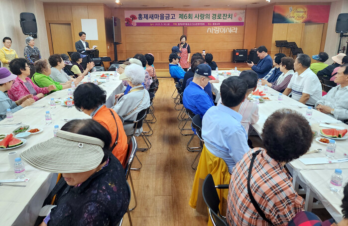 홍제새마을금고가 서대문구 홍제1동 어르신을 위한 경로잔치를 열어 주위를 흐뭇하게 했다.