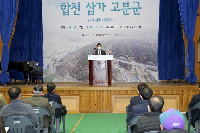 합천군(군수 문준희)은 12월 14일 삼가 고등학교 실내체육관 기념행사장에서 문준희 합천군수, 강경환 문화재청차장, 배몽희 합천군의회의장, 노영식 경상남도문화관광체육국장을 비롯해 합천군 기관 · 사회단체, 합천군민이 참석한 가운데 합천 삼가 고분군 국가사적 지정을 기념하는 행사를 개최했다.