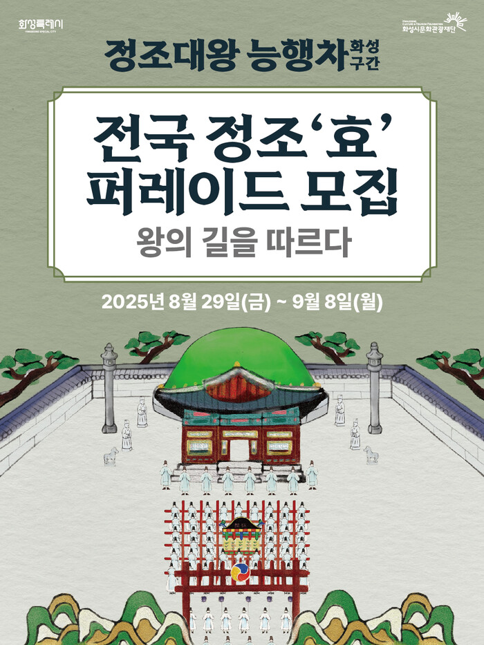 [화성=송윤근 기자] 경기 화성특례시(시장 정명근)는 오는 27일부터 28일까지 개최되는 ‘2025 정조효문화제·정조대왕능행차 공동재현(화성구간)’을 앞두고, 시민이 직접 참여하는 다양한 행렬 참가자를 모집한다고 2일 밝혔다.