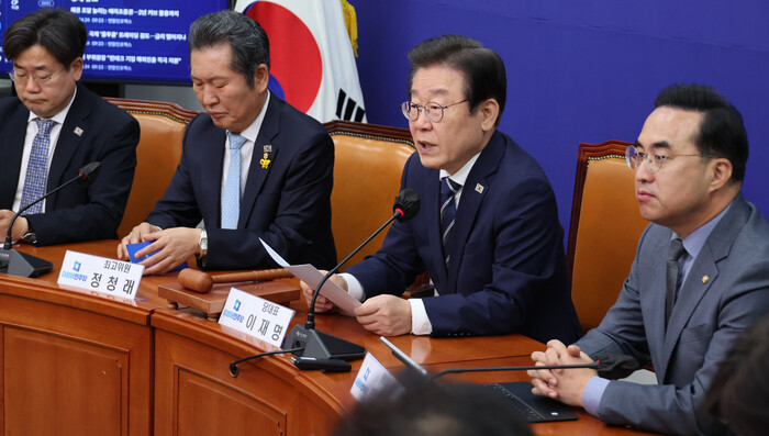 이재명 민주당 대표는 이날 당 최고위원회 회의에서 "대일 굴욕외교가 일본 역사 도발에 날개를 달아주고 있다"고 윤석열 정부를 강하게 비판했다.