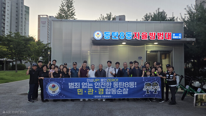 [화성=송윤근 기자] 경기 화성특례시(시장 정명근) 동탄8동이 지난 26일 ‘안전하고 살기 좋은 동탄8동 만들기’를 위한 자율방범대 초소 현판식과 민·관·경 합동 순찰을 통해 지역 안전망 강화에 나섰다.