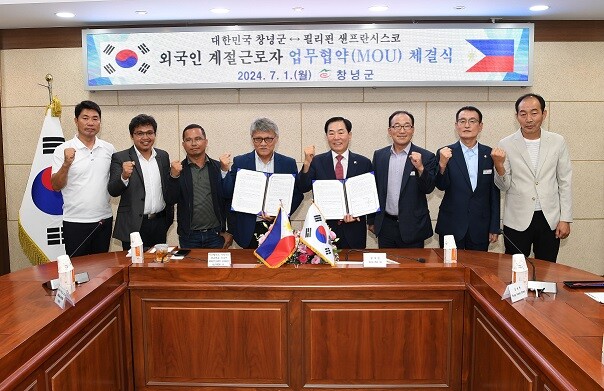 이번 협약식에는 성낙인 창녕군수 등 관계 공무원, 전영두 계절근로자 고용주 대표, 필리핀 샌프란시스코 아르퀼라노 아라나스 알프레도 시장 등 관계자 4명이 참석했다.