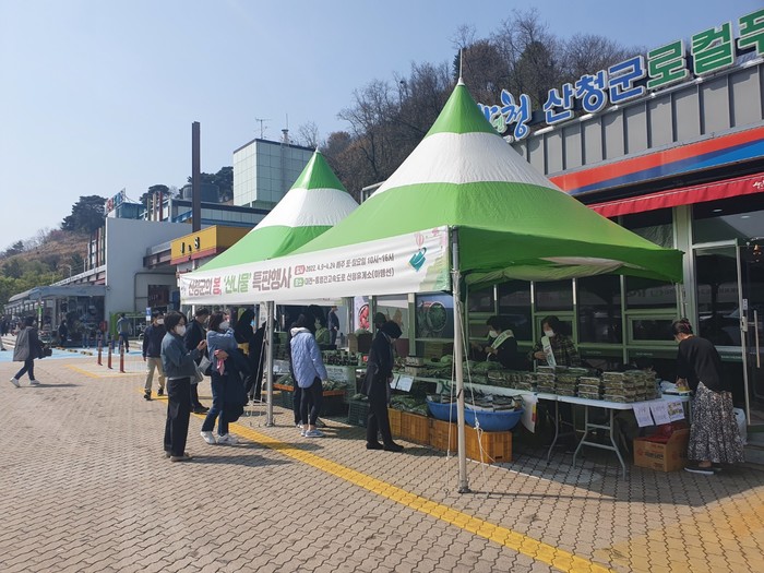 산청군이 봄을 맞아 진행한 로컬푸드 행복장터 산나물 특판전이 고객들의 호응에 힙입어 성황리에 마무리됐다.