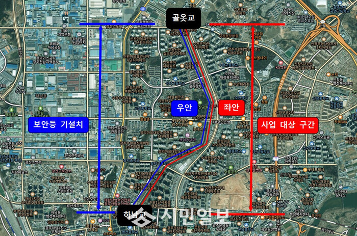 풍영정천 산책로는 풍영정천 좌안 하남교부터 골옷교까지 약 3㎞ 구간으로, 산책로에 조명시설이 없어 야간 보행 환경 개선 필요성이 제기됐다.