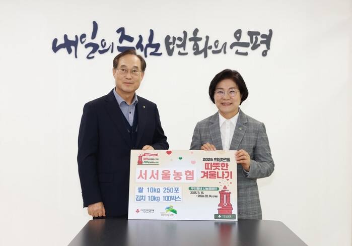 김미경 은평구청장은 “귀한 나눔에 동참해 주신 서서울농협에 깊이 감사드린다”며 “은평구는 앞으로도 민관이 함께하는 나눔 문화를 확대하고, 도움이 필요한 분들께 더 촘촘한 지원이 이루어질 수 있도록 노력하겠다”고 전했다.