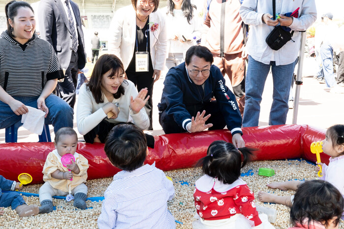 | ▲ 정명근 화성특례시장이 영유아들에게 인사를 하고 있다 /사진제공=화성특례시 |