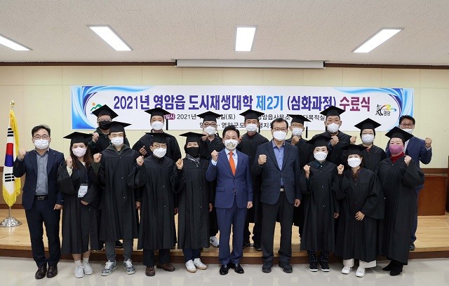 전동평 군수는 수료식에서 수강생과 교육 관계자들의 노고에 감사를 표하고 “사람과 생태, 문화의 가치를 살리기 위한 영암읍 도시재생 뉴딜사업이 영암읍을 새롭게 디자인하고 지역주민의 삶의 질 향상에 도시재생대학에서 배운 지식과 경험을 바탕으로 수강생들의 중추적인 역할을 기대하며 우리 군에서도 사람과 환경 중심의 도시재생을 위해 최선을 다하겠다.”고 강조했다.