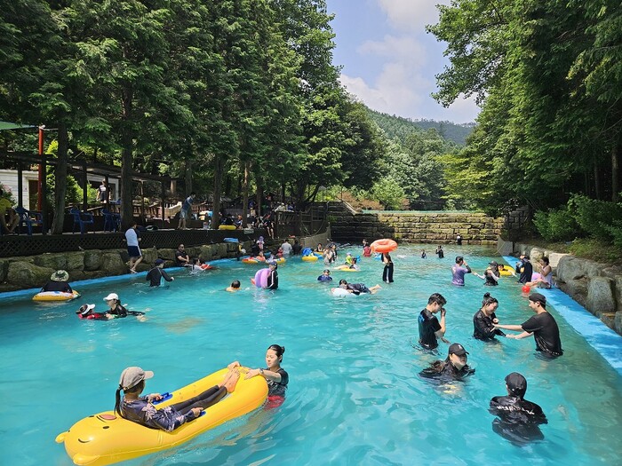 | ▲ 초당림에서 물놀이를 즐기고 있는 피서객들 / 자료사진=강진군 제공 |