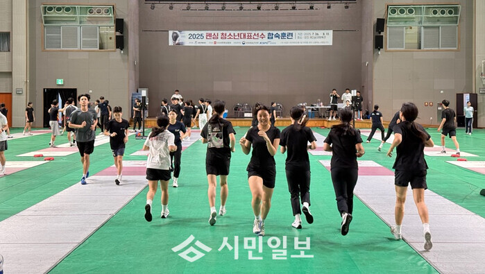 | ▲ 펜싱종목 청소년 대표선수들이 강진군 제1실내체육관에서 전지 훈련을 하고 있다. / 강진군 제공 |