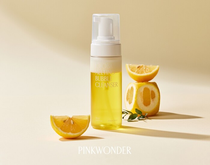 핑크원더 ‘호호바 멜팅 버블 클렌저’는 이스라엘산 골든 호호바씨오일과 피부 열 내림 핵심 원료 황련뿌리추출물, 비타민C와 결합된 히알루론산 함유로 뛰어난 피부 진정 효과를 전하는 오일 폼 클렌저이다.