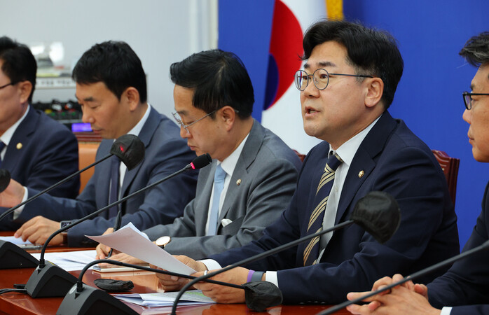 이날 민주당 원내대책회의에서 박찬대 원내대표는 22대 국회 원 구성과 관련해 기존 입장을 되풀이했다.