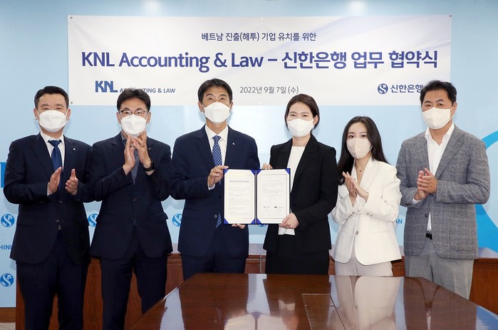 [시민일보 = 이대우 기자] 신한은행(은행장 진옥동)은 아세안 지역의 주요 경제 파트너인 베트남에 진출하는 기업을 전문적으로 지원하고자 KNL Accounting & Law(대표 변호사 이수정, 이하 KNL)와 업무협약을 체결했다.