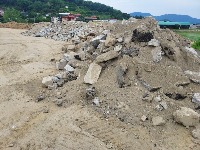 이렇듯 폐콘크리트와 혼합 건설폐기물을 장기간 방치하고 폐콘크리트에 임시 그물망을 덮을 여유의 시간이라면 관할 시에 임시 폐기물 야적장 허가를 받아 폐기물 처리 신고와 함께 행정절차를 진행했어야 한다.