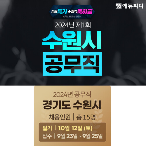 이에 에듀피디는 최신 수원시 공무직 일반상식 기출문제를 완벽하게 복원하고 전 범위 ‘이론+문제풀이’ 구성의 ‘합격패키지’ 강좌를 ‘30일’ 단기 과정으로 오픈하고 짧은 수험기간 동안 고효율 학습 효과와 점수 향상을 이끌어낼 수 있는 집약적인 커리큘럼을 선보인다.