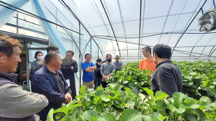 경남도농업기술원과 협조해 지난 12일 미래농업교육관에서 이뤄진 ‘해외전문가 초청 양분결핍 경감 기술교육’에는 딸기농가에서 30명이 참여했다.