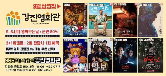 | ▲ 강진영화관 9월 개봉영화 / 강진군 제공 |