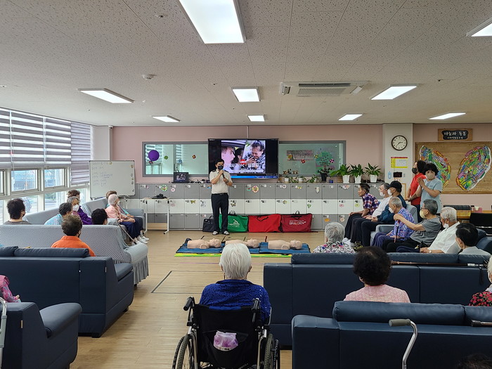 이날 소방 안전 교육은 어르신 눈높이에 맞춘 체험 중심의 교육으로, 화재 발생 시 대처 요령을 익히고 구급 대원이 도착하기 전 신속하고 정확한 초기 응급처치를 할 수 있도록 하고자 진행됐다.
