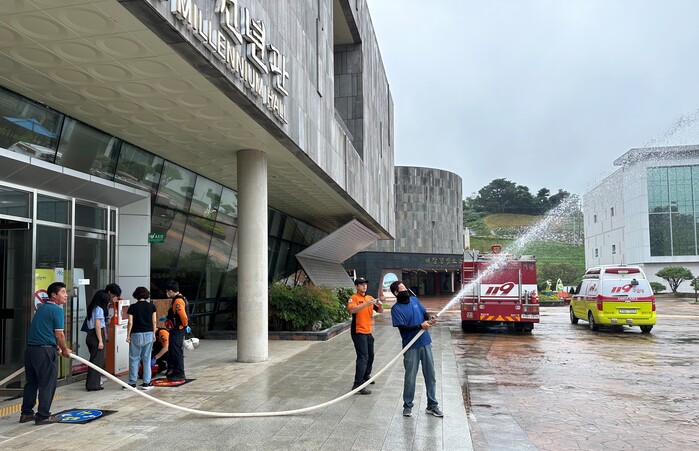 유성경 관광진흥과장은 “이번 합동소방훈련을 통해 대장경테마파크 직원들이 화재 발생상황에 대한 대응력과 안전의식을 높이는 계기가 될 것”이라며 “화재 시 관람객의 피해가 발생하지 않도록 신속하고 철저한 화재 대응에 필요한 교육과 훈련을 진행해주신 합천소방서 북부119안전센터에 감사드린다”고 말했다.