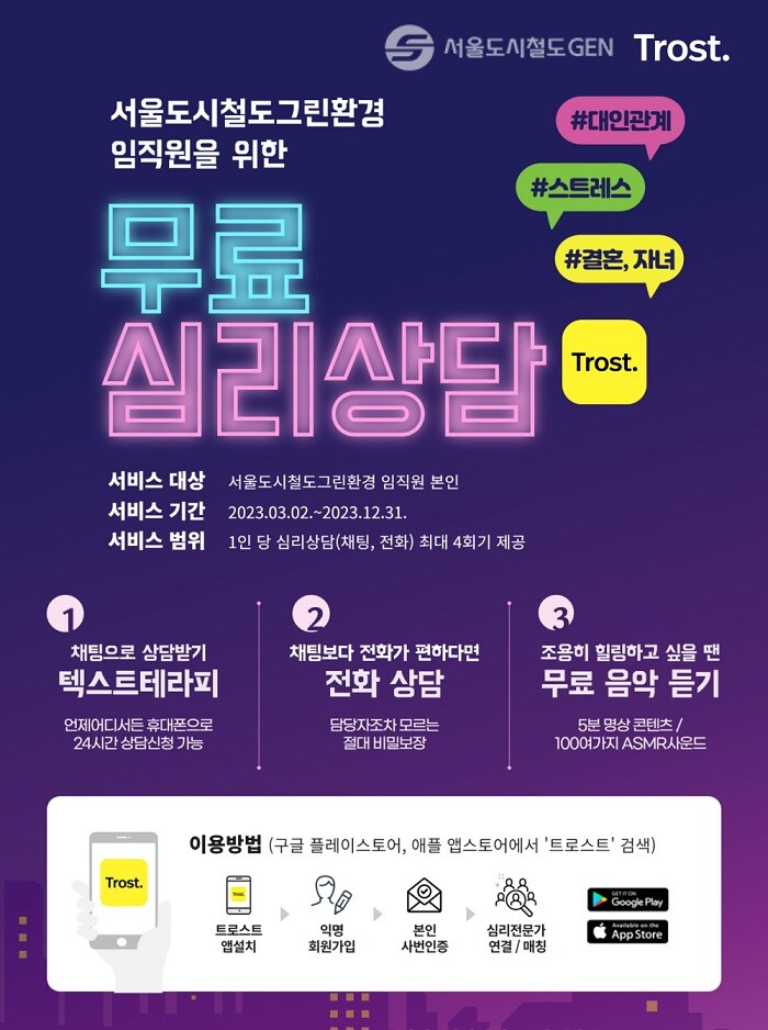 | ▲ 서울도시철도그린환경 - 트로스트 심리상담 이용 안내 이미지 |